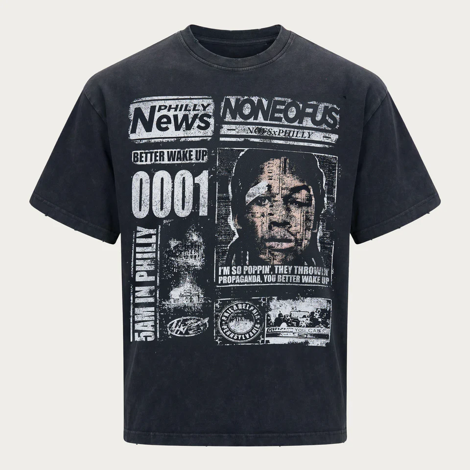 Black NOFS Newspaper Short Sleeve T-shirt